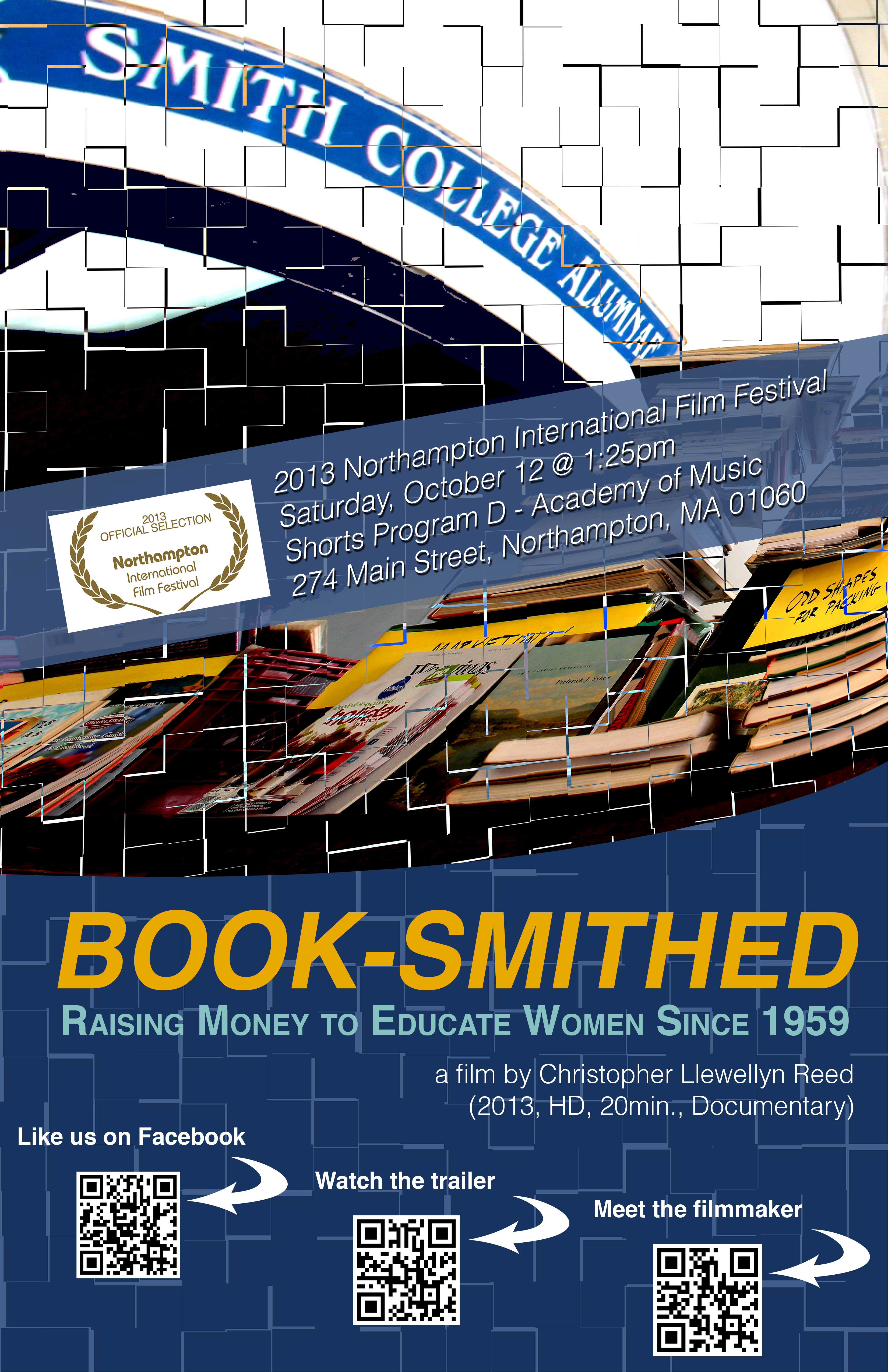 My latest film, Book-Smithed, plays next at the 17th Annual Northampton International Film Festival, on October 12. See flier, above, for details.